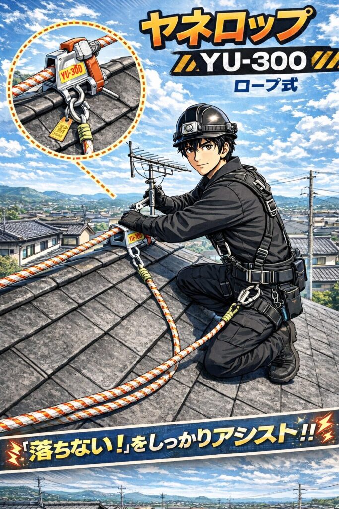 大屋根作業で転落事故を防ぐのがヤネロップです。